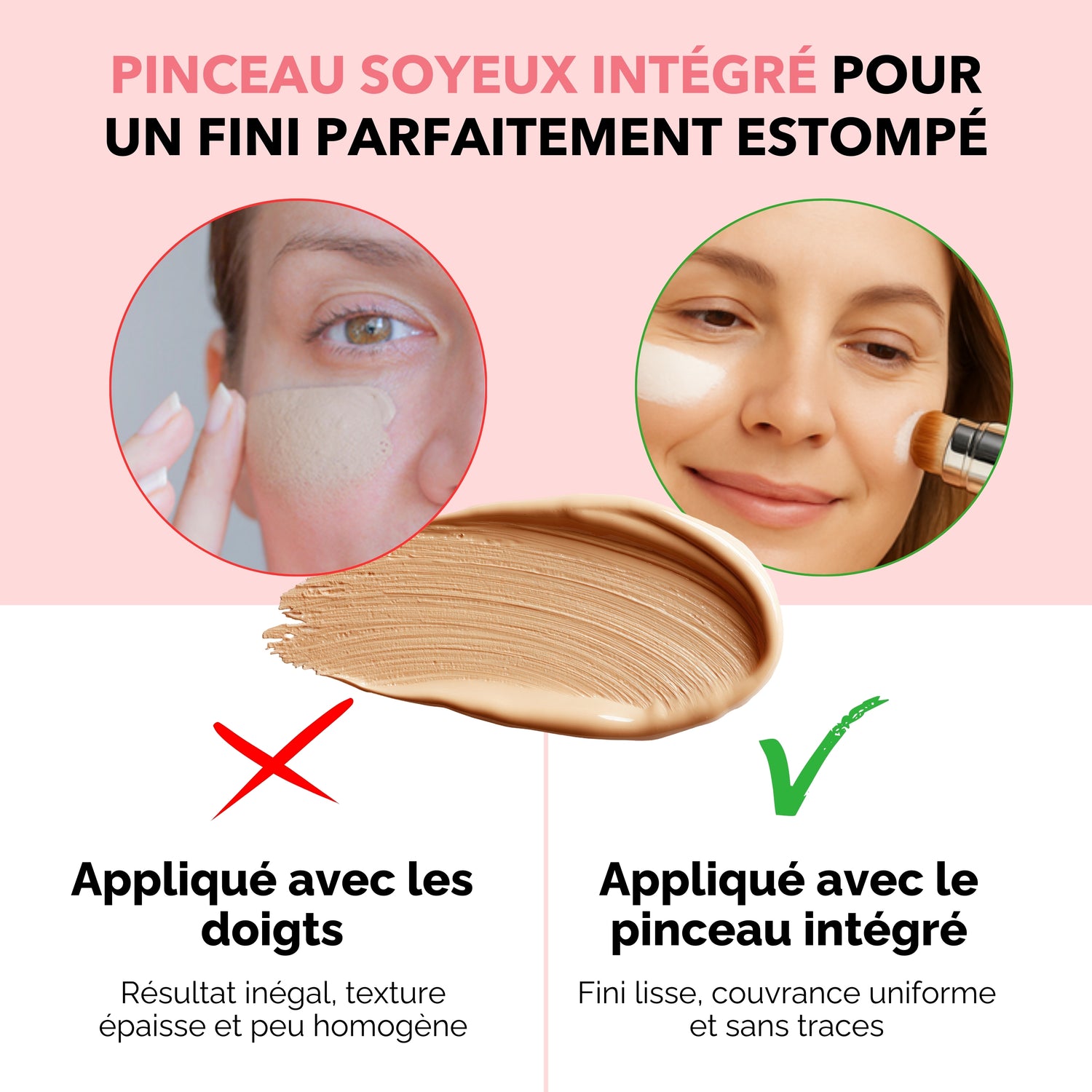 - 2 couches : teint plus uniforme, sans effet masque
