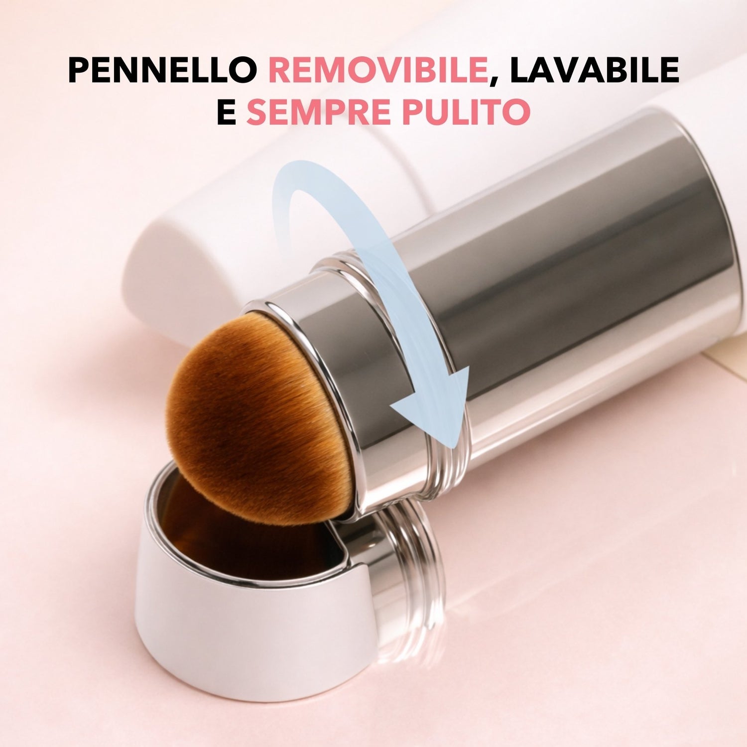 Applica lo stick sulle zone chiave e sfuma con il pennello integrato con piccoli movimenti circolari, dal centro verso l’esterno.