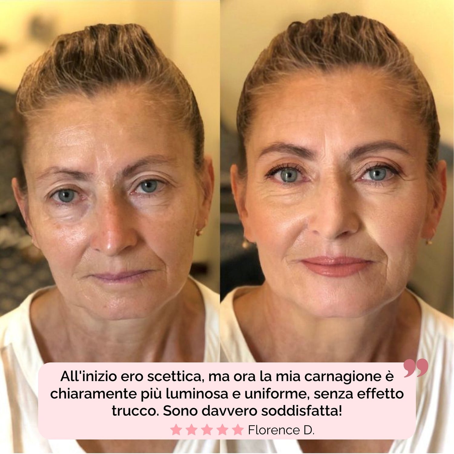Risultato: un incarnato uniforme, luminoso e naturale, senza effetto trucco. 🤍